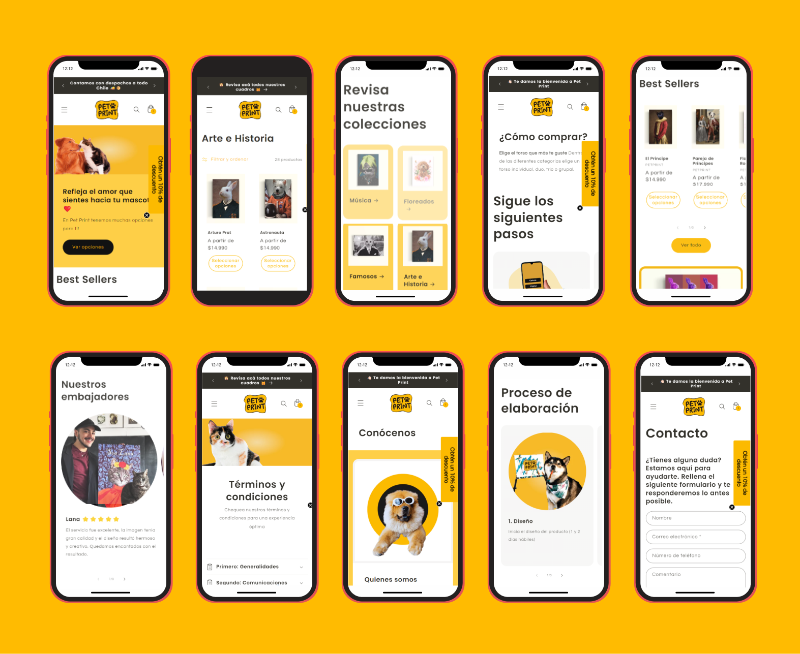 Pet Print es una tienda encargada de vender cuadros personalizados de mascotas en l铆nea. La tienda est谩 implementada en la plataforma ecommerce Shopify, mis responsabilidades incluyeron la configuraci贸n y administraci贸n de esta tienda, adem谩s de la creaci贸n de contenido visual y la optimizaci贸n de im谩genes.